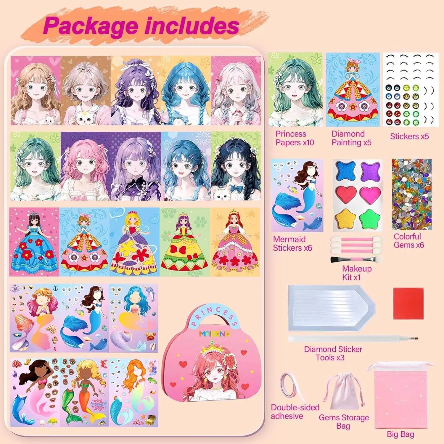 Activities Included Dress-Up Stickers, Makeup Play, Diamond Painting, Paper Crafts