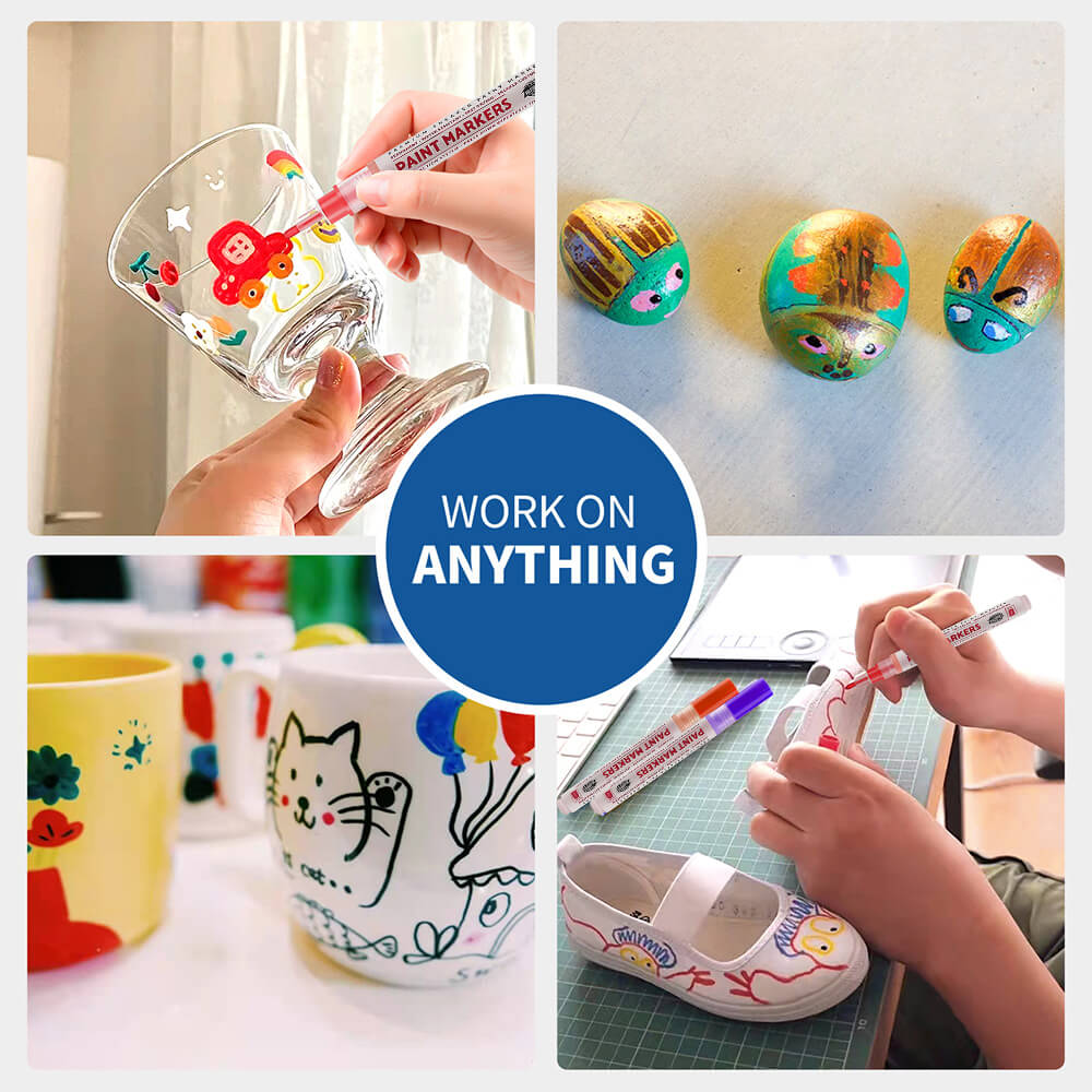 Each marker is filled with high-quality, water-based acrylic ink that glides smoothly on paper, canvas, rocks, wood, glass,