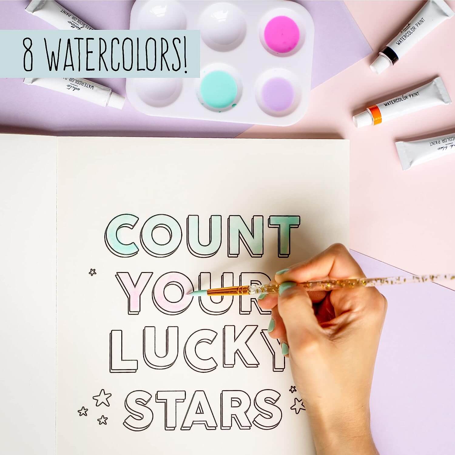 Premium Tools Included: Gel pens, watercolor cakes, acrylic paints, and brush pens