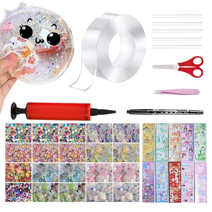 tools, and instructions, allowing kids to design custom squishy stress bubbles with different sizes, colors, and textures.