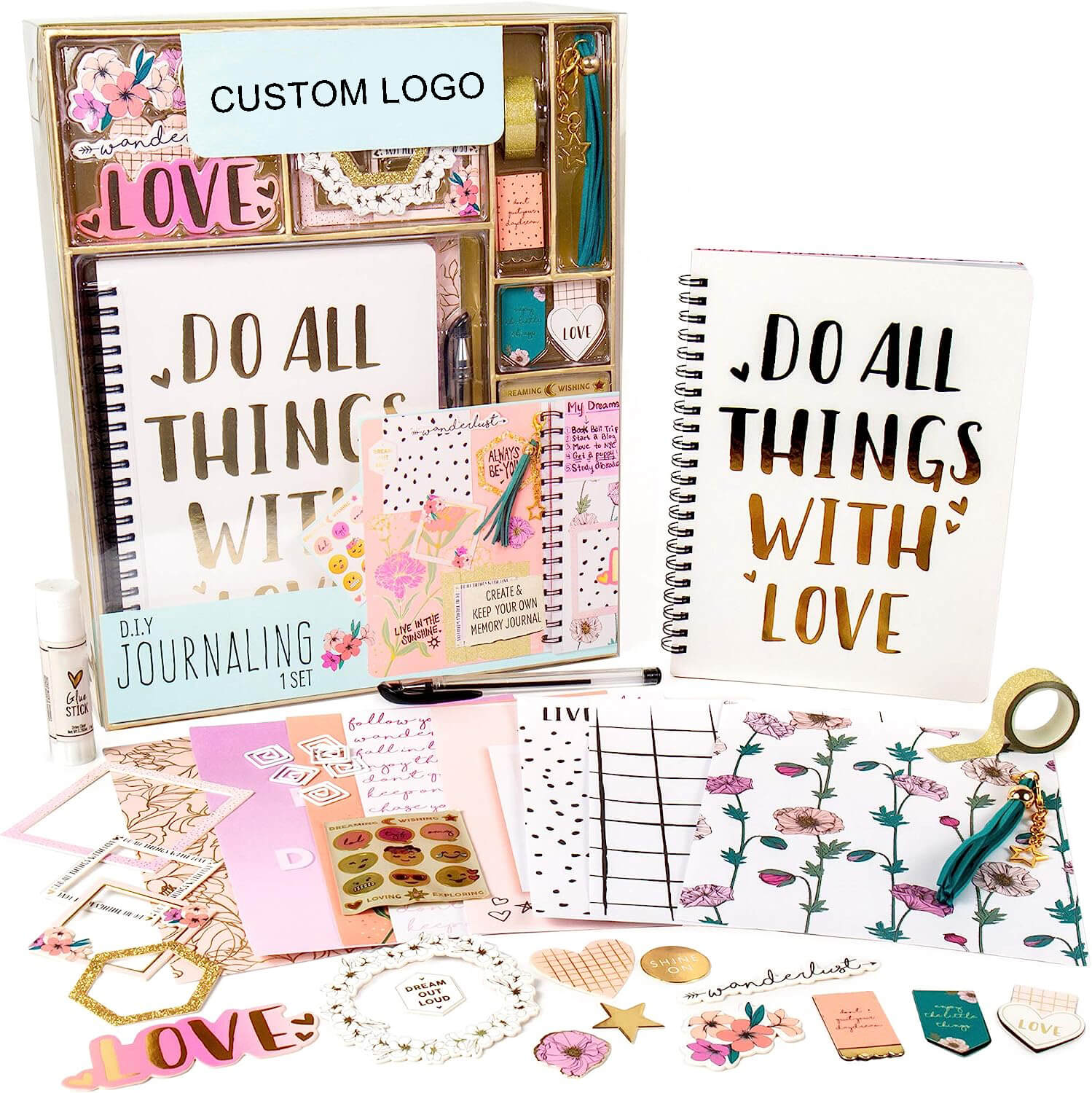 Complete Writing Set: Includes notebook, Stickers, tapes, pens, and creative elements included