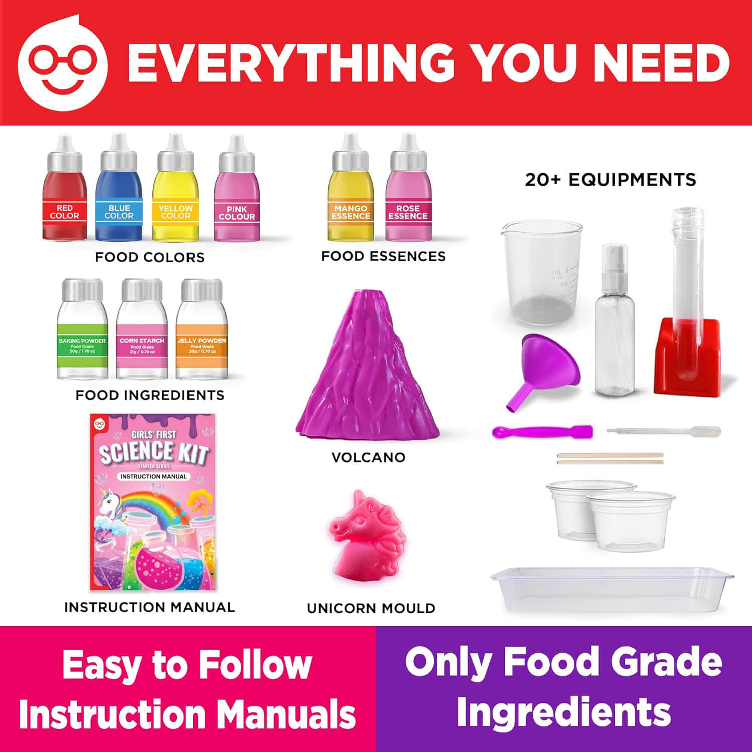 The kit includes high-quality, non-toxic materials and step-by-step instructions for easy, guided experiments.
