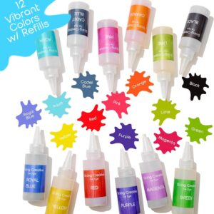 DIY Tie Dye Kit for Kids – 12 T-Shirts with 12 Color Bottles, Fidget Toys & Party Favors for Creative Fun